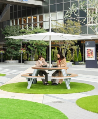 イベント広場として慣れ親しんできたこの場所が、芝とおしゃれな家具が彩るアウトドアリビングに大変身!!