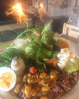 ランチBOX:無農薬の温野菜やサラダに自家製発酵ドレッシングをかけて頂きます。スパイス塩糀チキンも入った免疫力をあげる野菜たっぷりの発酵ランチ